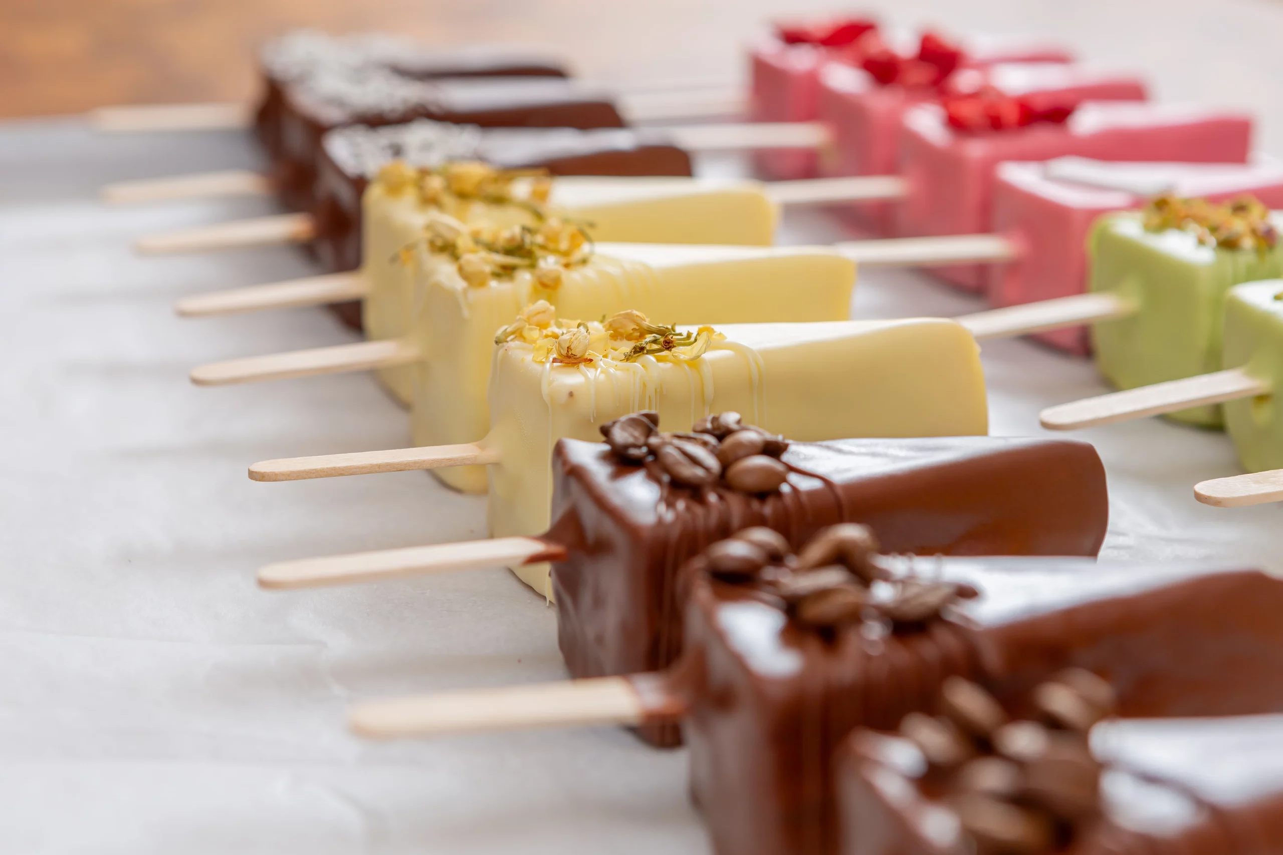W naszej ofercie znajdują się babeczki z kremem, ciastka i pierniki, słodycze na patyku (lody, serniczki, lizaki), makaroniki oraz torty.