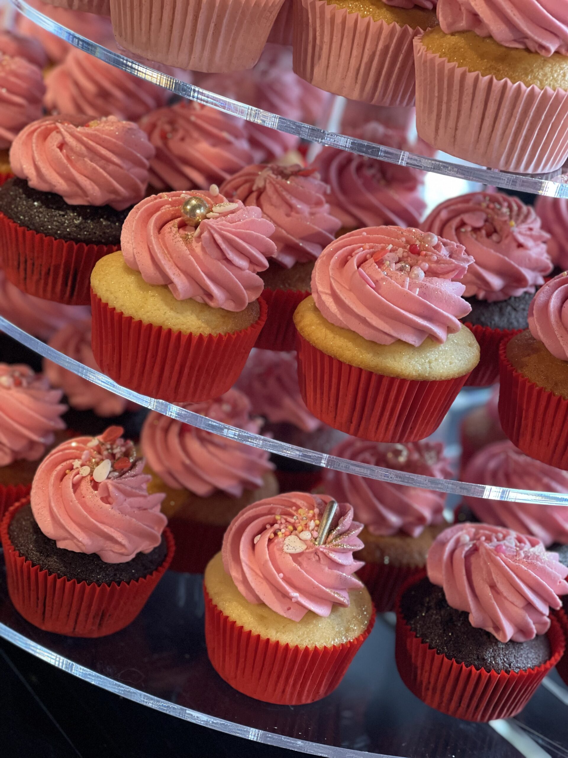 Babeczki i torciki babeczkowe – w walentynkowych, serduszkowych dekoracjach, z białym lub kolorowym kremem.